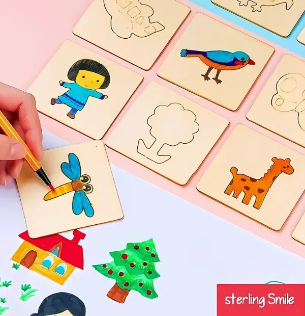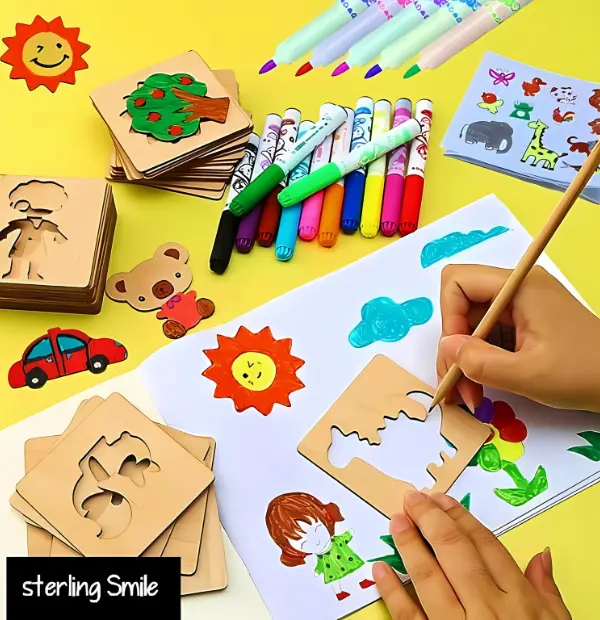 Create captivating patterns with this wooden painting stencil art tool Even young kids can create beautiful art, designed for little hands easy to carry and use With different arrangements and organizations, you can draw a lot of patterns.